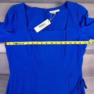 Copper Key Faux Wrap Dress Size Medium Blue Career Textured Classic Rayon Mini