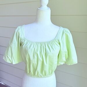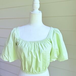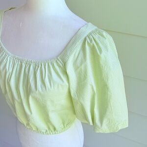 Copper Key Gingham Green Cropped Top with Puff Sleeves Size Small