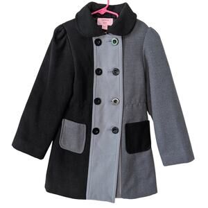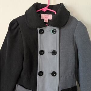 Copper Key Girls Black & Gray Colorblock Double Breasted Lined Pea Coat 6/6X