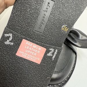 The product is a pair of Copper Key girls' leather slip-on shoes in black with a front bow detail. These loafers are designed for a comfortable flat style and fit in size 2. The sleek design and high-quality leather material make them a stylish and timeless choice for young girls looking to add to their shoe collection. Perfect for both casual and more formal occasions, these shoes from Copper Key are a fashionable addition to any young girl's wardrobe. Brand new without tags or box. Comes from a smoke free home.