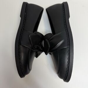 Copper Key Girls Leather Front Bow Slip On Black Shoe Loafers Sz 2 New