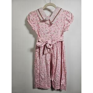 Copper Key Girl's Size 8 VTG Pink Floral Cotton Collared Dress