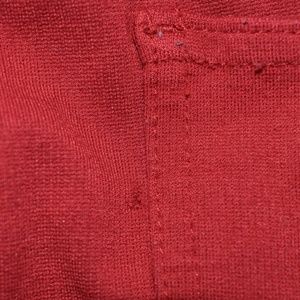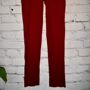 Red jeggings with lots of stretch, an elastic waist band, and two back pockets.