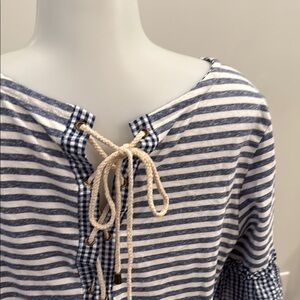 Copper Key Large Nautical Striped Blue and White Women's Lace Up Back Top