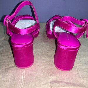 Copper Key Lux bright pink satin bow platform heels Sz 6.5 block heel