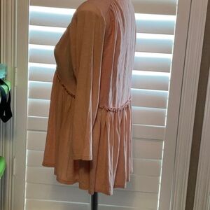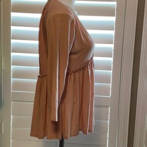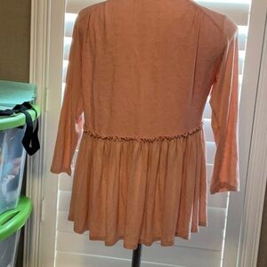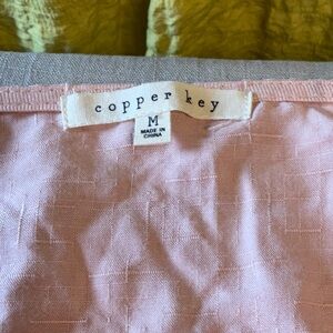 This Copper Key blouse in a vibrant orange hue showcases charming flutter sleeves and a relaxed, ruffled design. The soft fabric drapes elegantly, creating a flowy and feminine silhouette ideal for any occasion.