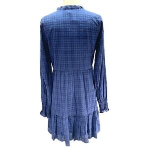 Copper Key Plaid Long Sleeve Smocked Tiered Dress Blue Juniors Small NWT