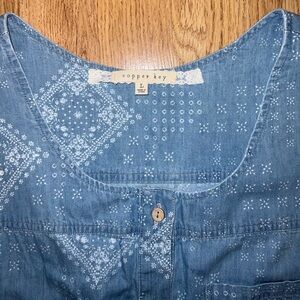 Chambray Copper Key romper size large in great condition!! It has pockets and the buttons are able to be opened.