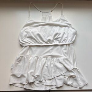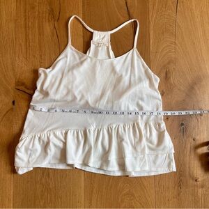 Medium, Copper Key shirt with ruffle bottom detail. No hole, stains, or rips. Built in bra. VGUC