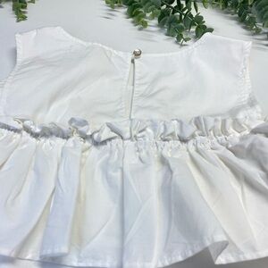 Copper Key Ruffled Cold Shoulder White Top Size S True to Size, Back Button closure