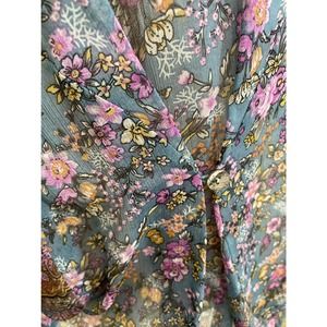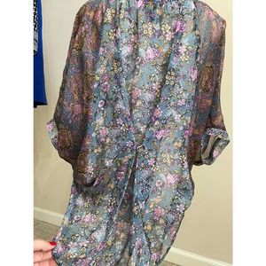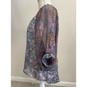 Copper Key Sheer Blouse Blue Purple Floral Flowy Shirt Sz M Kimono Sleeve