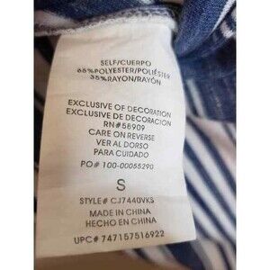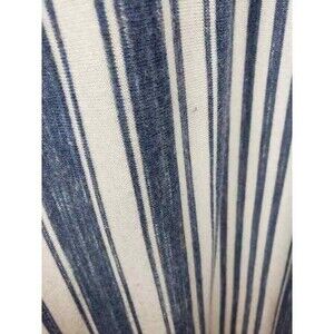 This is a distressed navy blue and white/cream striped cozy fabric. The stripes are different sizes, it's a really cute jumpsuit.