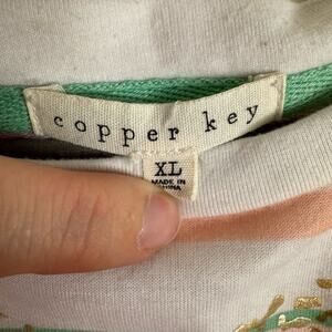 Copper Key Striped Teal Coral Long Sleeve Top Gold Heart Stretch Girl's Size XL
