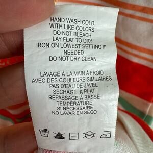 Excellent preowned condition. Colorful coral/teal striped long sleeve round neck top with gold applique heart on chest. Polyester/spandex material. Approx. measurements: Shoulder to hem 23", pit to pit 19", sleeve from neck to sleeve hem 23". Girl's Size XL.