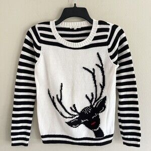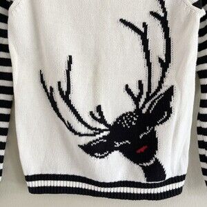 Copper Key Sweater Top Girls Size XL Deer Graphic Print Striped Black White