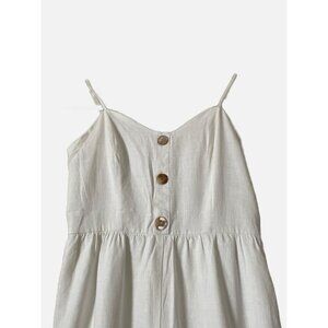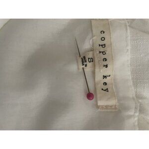 The Copper Key Women's Backless 100% Cotton Wide Leg Jumpsuit in size Small is perfect for a variety of occasions including travel, parties, and casual wear. The halter neckline, sleeveless design, and easy care cotton fabric make it comfortable and stylish for the warmer months. The jumpsuit features a zip closure, wide-leg style, and a solid white color with accents like buttons, straps, and logos. Easy to care for with machine washable instructions, this jumpsuit is a trendy and versatile addition to any wardrobe.