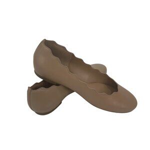 Copper Key Womens Beige Scalloped Leather Ballet Flats Size 8 Comfort Slip On