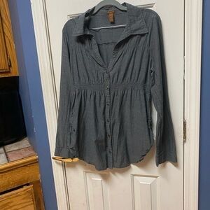 Copper Key Womens Gray Button Up Top Size xL Long Sleeve Cinch side and front