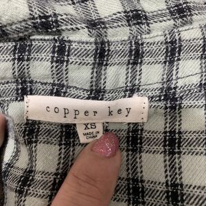 Copper Key Women’s Plaid Flannel Shirt XS Mint Green Black Long Sleeve Button Up