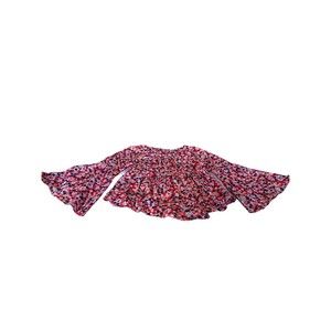 Copper Key Womens Size Small Blouse Boho Top Bell Sleeve Red Floral Swing Flowy