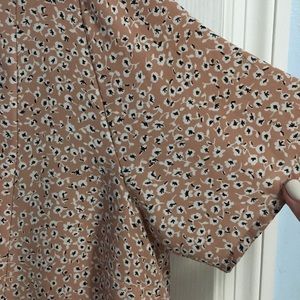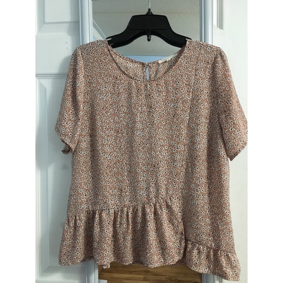 Beautiful color &’ print blouse, short sleeve, no stretch to it, would say runs just a bit small so if you’re normally a medium/large this would fit perfect !