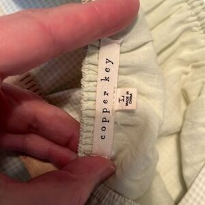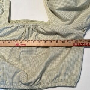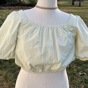 Copper Key gingham green white print cropped top with puff sleeves size large