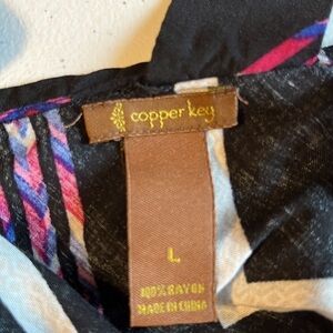 Copper Key top in black with zig zag stripes in white, red, blue . Soft stretch . Back with unique straps st neckline . Large