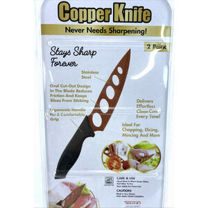 Copper Knife 2 pack, Stainless Steel Copper Coating Stays Sharp Forever by Tenko