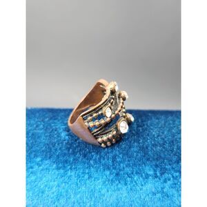 Copper Multi-Band Statement Ring Clear Crystals Size 9 Brass Accents Boho Chic