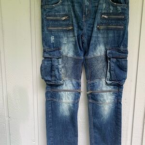 Copper Rivet Jeans Mens 42/32 Blue Straight Distressed Zip Detail Biker Moto