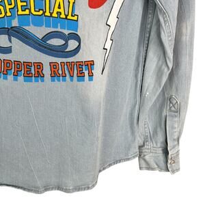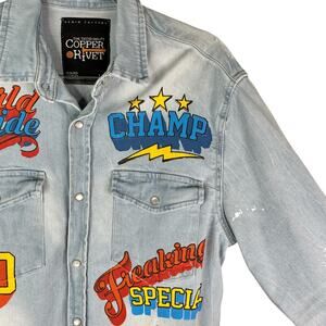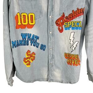 Copper Rivet Light Blue Denim Shirt Snap Button Graphic Prints Large