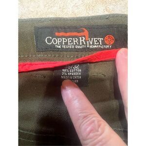 Copper Rivet Men’s Green distressed Jeans Sz 36/30 The inseam is like 30.5. Preowned in excellent condition.
