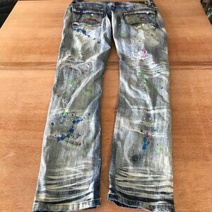 Copper Rivet Slim Fit Jeans Men 36x33 Blue Distressed Paint Splatter Grunge