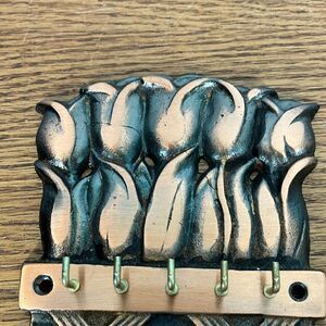 Copper Tulips in a Basket Floral Key Holder, 5 hooks w/screws