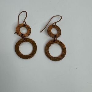 Handmade by me Southern Sista, copper washers hammered and hole drilled to attach two washer, bare copper French ear hook.