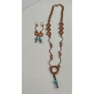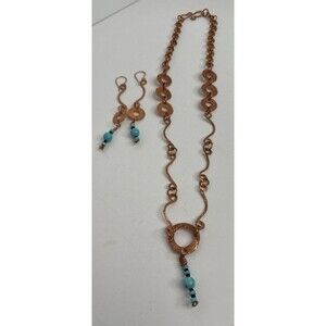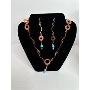 Copper Wire Necklace Earrings Set With Turquoise Gemstones Hand Crafted Boho