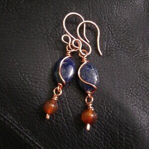 Copper Wire Wrapped Earrings ~ Lapis Lazuli & Russet Agate | Fall Jewelry