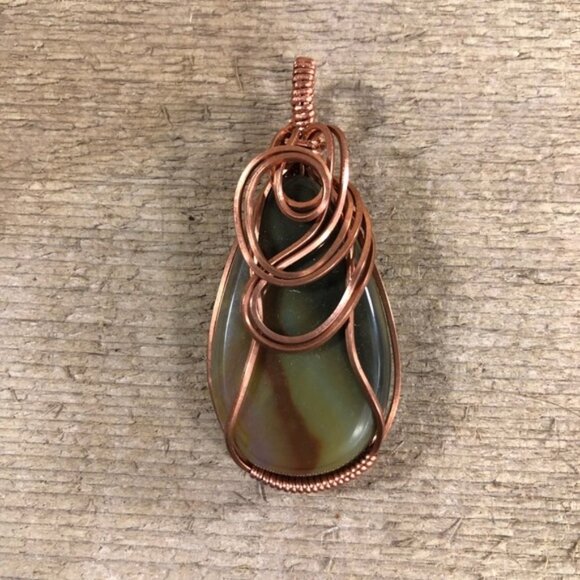 Natural Jasper Pendant. Handcrafted as a hobby of mine. Wire wrapped in copper wire. Every piece is unique. This is Pendant only no chain.