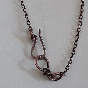 Oxidizing helps keep copper from tarnishing and creates that warm, soft chocolate brown color. After carefully cleaning in water, I buffed and polished the piece by hand. Several hours go into the creation of each of my pieces.