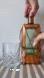 Roughly 9.5in tall with 3.5-4in square base. The interior of the bottle is washable and holds roughly 330mL (European beverage standard). Glass is in excellent condition. Copper has patina that can be left or cleaned to your contentment. Made in Sweden.