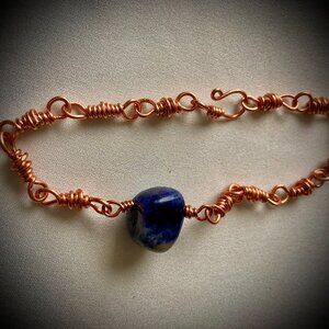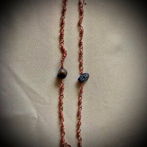 DOUBLE WIRE WRAPS CHAIN LINKS AND LAPIS LAZULI GEMSTONE NUGGETS, FISH HOOL CLASP, GIFT FOR HER AND HIM, ANNIVERSARY, LONG DISTANCE RELATIONSHIP, FRIENDSHIP, LOVE