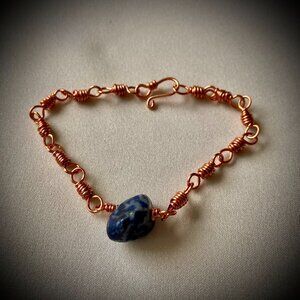 Copper chain links Lapis Lasuli Set of Two Bracelets, relationship gift