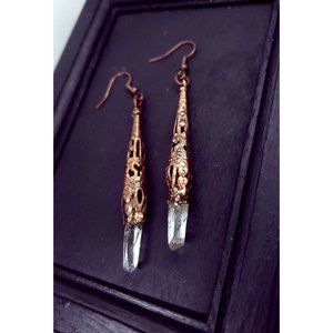 Copper plated filigree quartz crystal earrings handmade gothic style jewelry