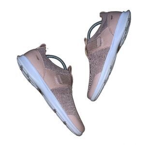 Pink Copper Fit Spirit Sport Sneakers. Stretch knit with adjustable strap closure. Lightweight. 100% Fabric. Synthetic sole. Size: 10B. Preowned in good condition. No box.