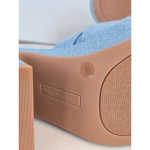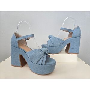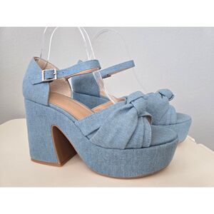 ⭐ Keywords: copper key denim platform heels sandals chunky block heel picnic aesthetic 90s y2k festival retro boho brunch cottagecore knot front blue shoes strappy sandal