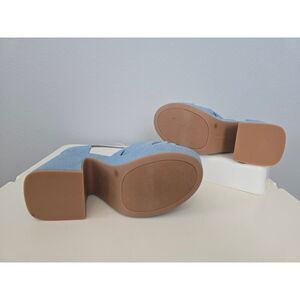 Copper Key Picnic Denim Platform Heels Size 8 Y2K Chunky Block Sandals Retro 90s