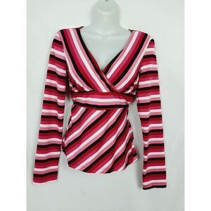 Copper Key medium pink black stripe stretch top