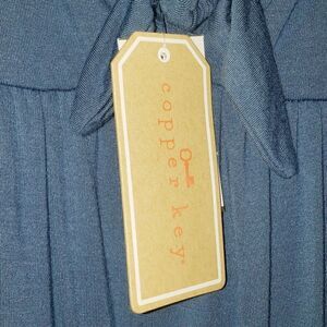 This A Copper Key Tie Front A- Line Dress. The color is Denim Blue. Perfect summer dress!