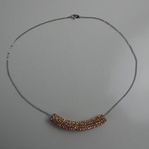 Copper Rose Gold Tone Curved Rhinestone Bar Slide Pendant Silver Chain Necklace