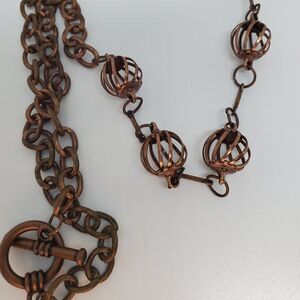 This necklace is made with copper color lantern style metal beads and copper color chain.